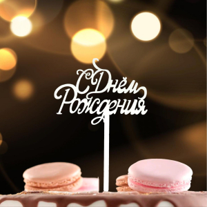 Топпер пластиковый синий/белый С Днем Рождения Корона