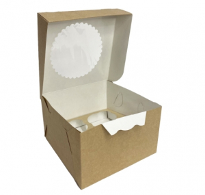 Коробка на 4 капкейка с окошком Крафт/Белая