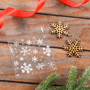 Пакет подарочный Новогодний с липкой лентой «Снежинки» 10×10 см