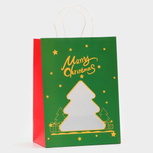 Пакет подарочный Новогодний Крафт, с окном Ёлка 30×22×14 см