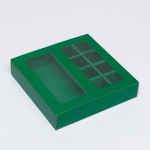 Коробка для 8 конфет+шоколад с окном Зеленая 17.7×17.85×3.85 см