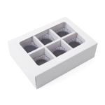 Коробка для 6 конфет с окном, белая, 13.7х9.85х3.85 см
