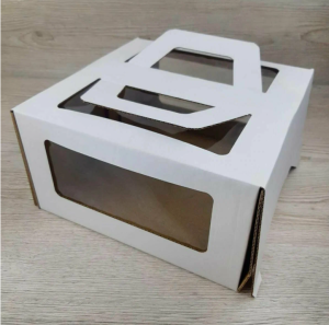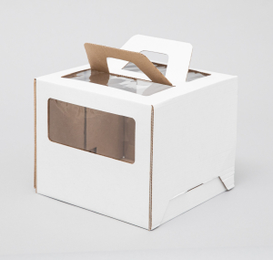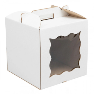 Коробка для торта с окном и ручкой Белая 26х26х28 см