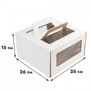 Коробка для торта с окном и ручкой Белая 26х26х15 см