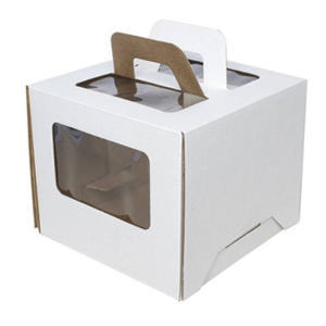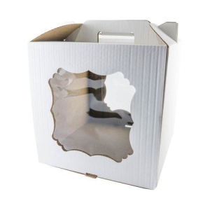 Коробка для торта с окном с ручкой Белая 26х26х30 см