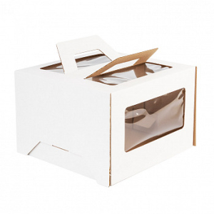 Коробка для торта с окном с ручкой Белая 20х20х15 см