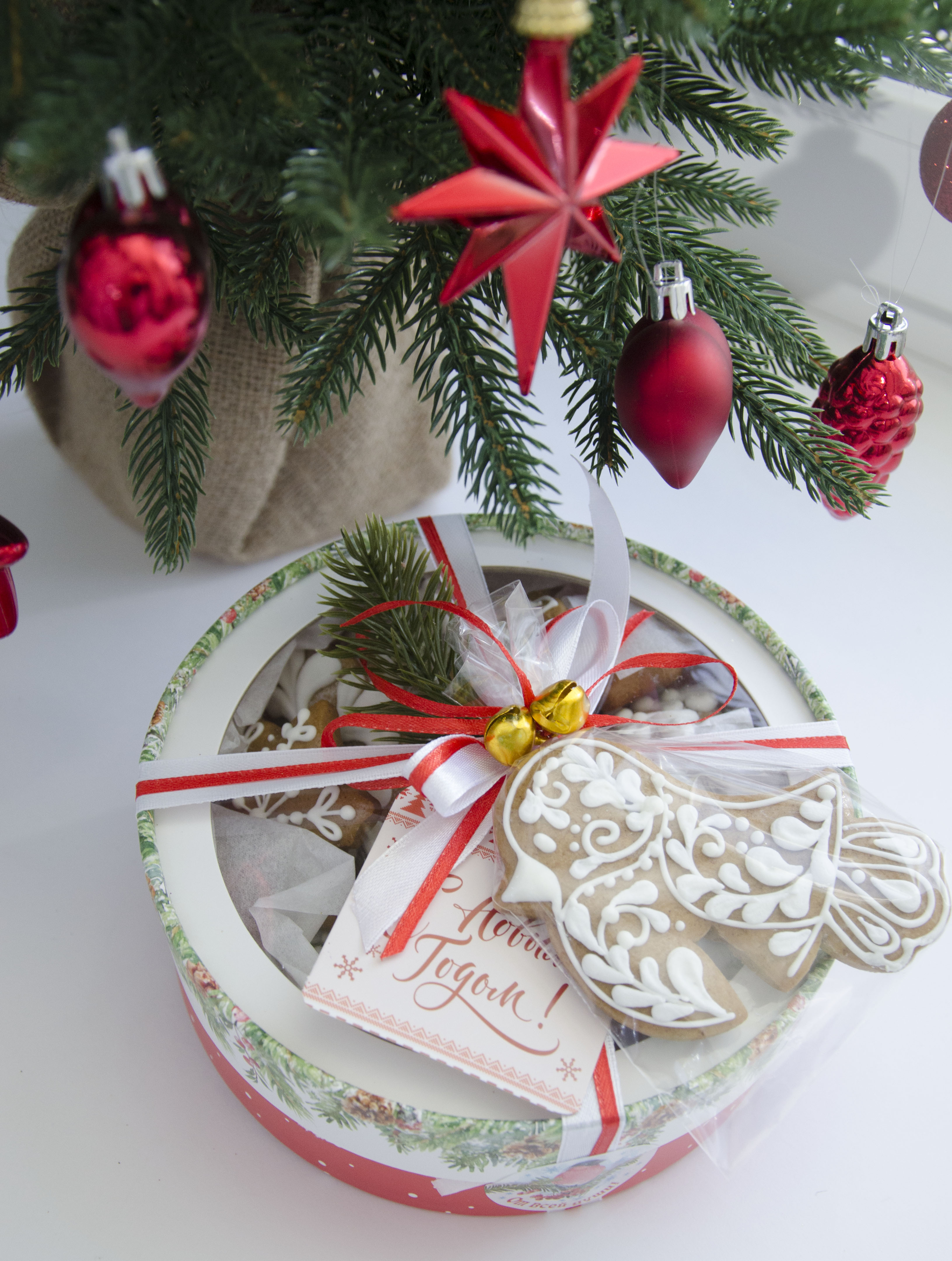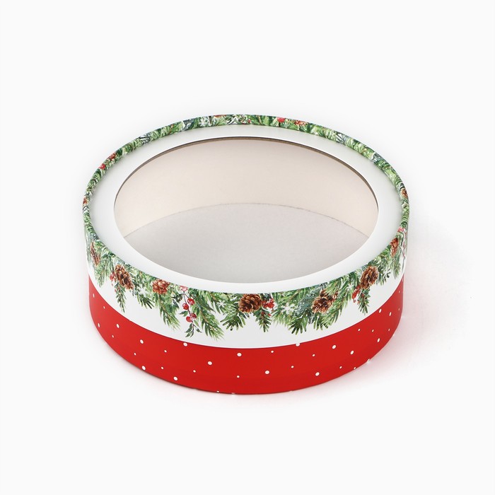 Коробка для макарун тубус с окном «Новогодняя ботаника», 16×16×5 см