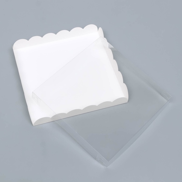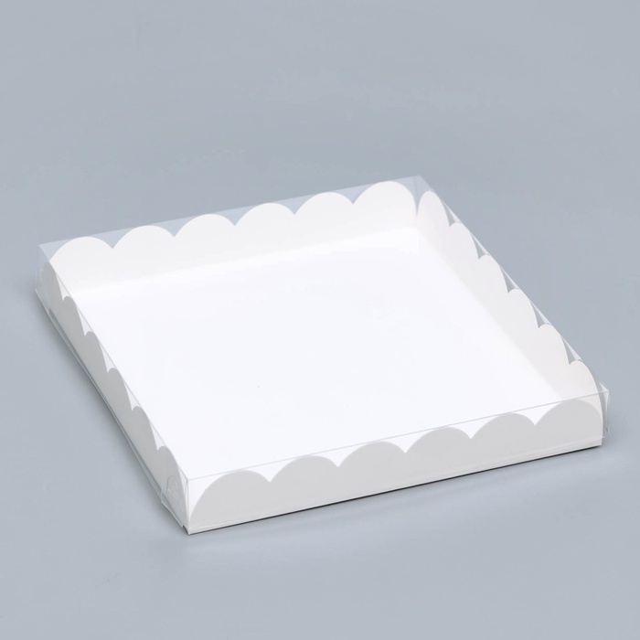 Коробка для печенья с пластиковой крышкой Белая 21х21х3 см