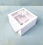 Коробка на 4 капкейка с окном Белая «Праздничная»