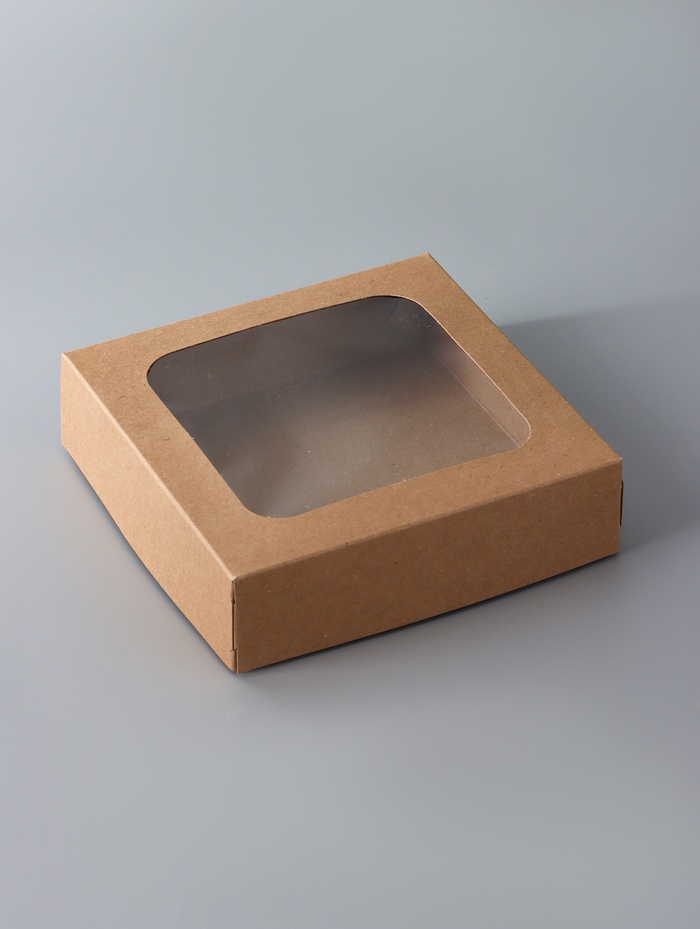 Коробка для сладостей складная Крафт с окном 15×15×4 см