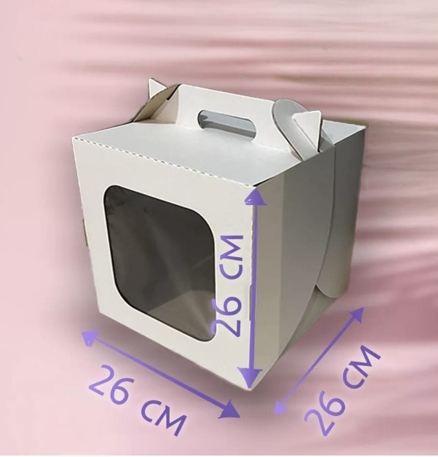 Коробка для торта с окном и ручкой Белая 26х26х26 см