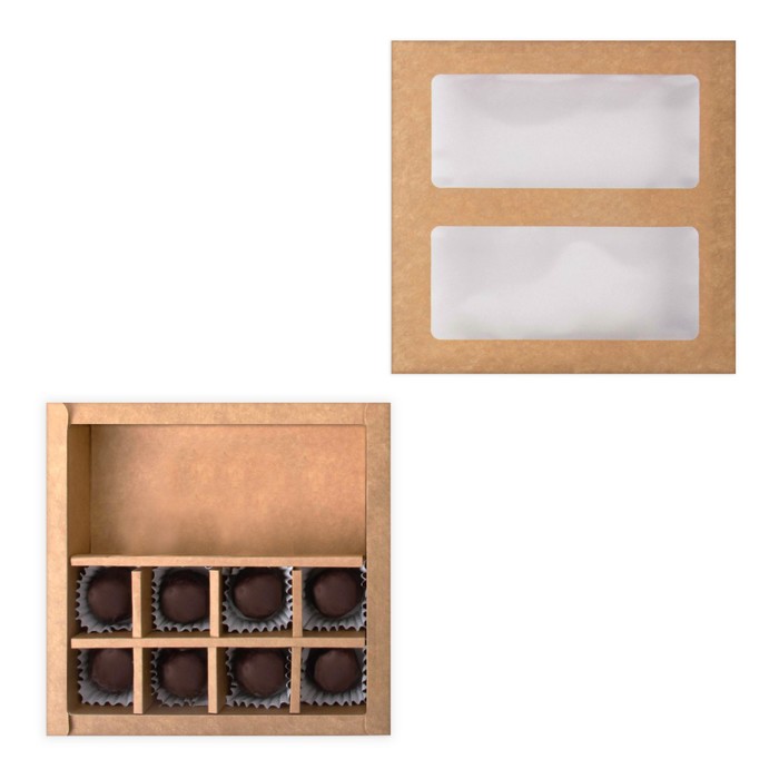 Коробка для 8 конфет+шоколад с окном Крафт 17.7х17.85х3.85 см