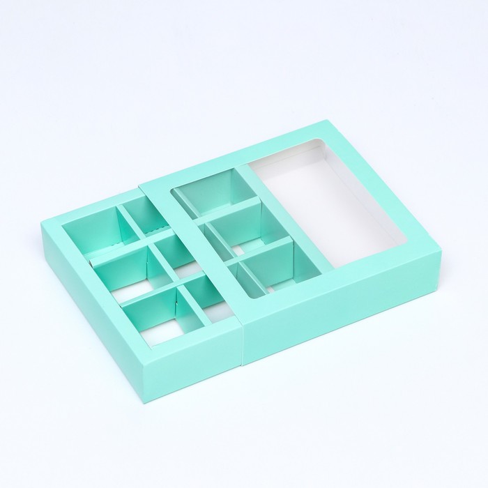 Коробка для 9 конфет раздвижная Бирюзовая 13.5×13.5×3.5 см