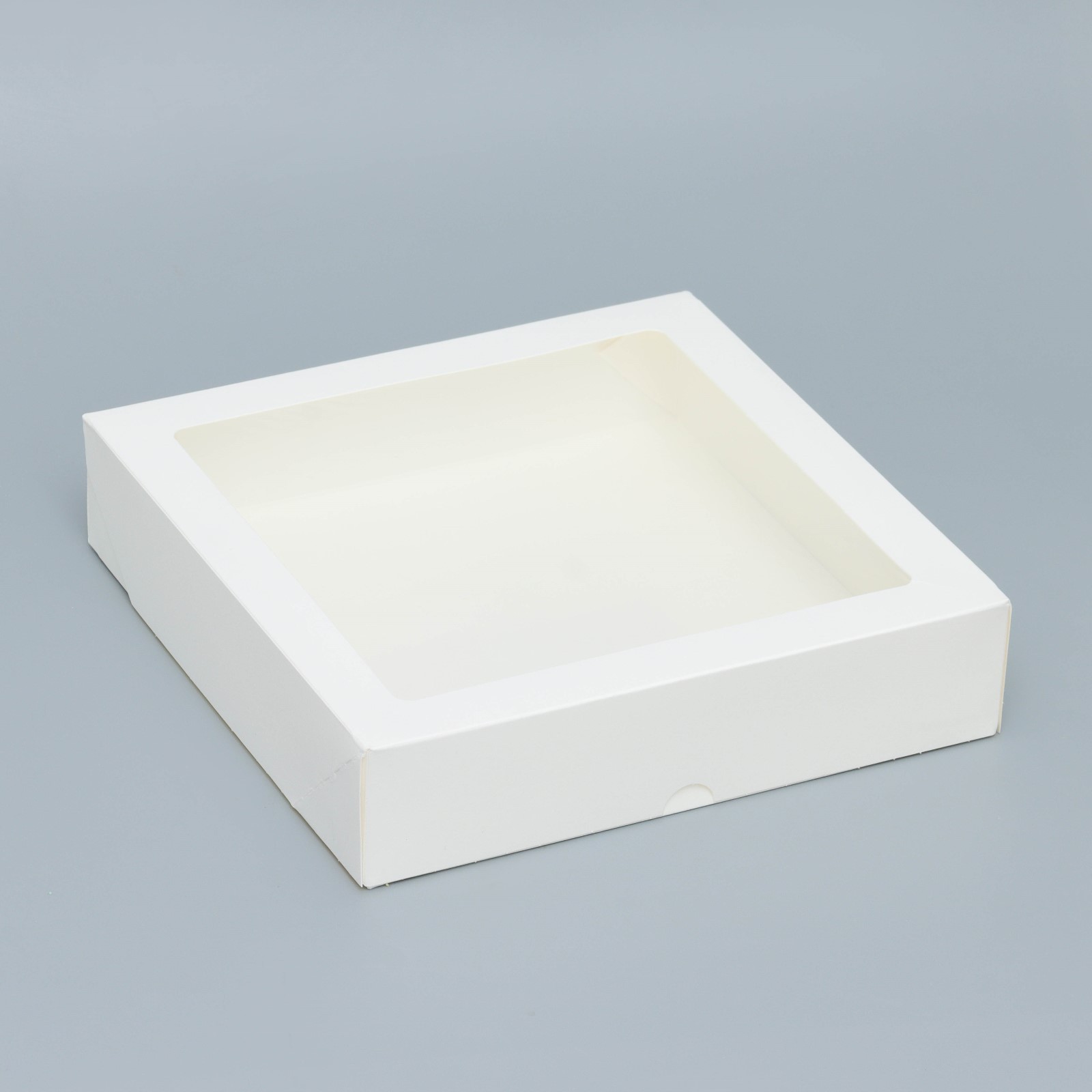 Коробка контейнер на вынос с окном Белый 20х20х4 см