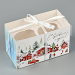 Коробка на 2 капкейка «С Новым годом» Зимний отдых 16×8×10 см