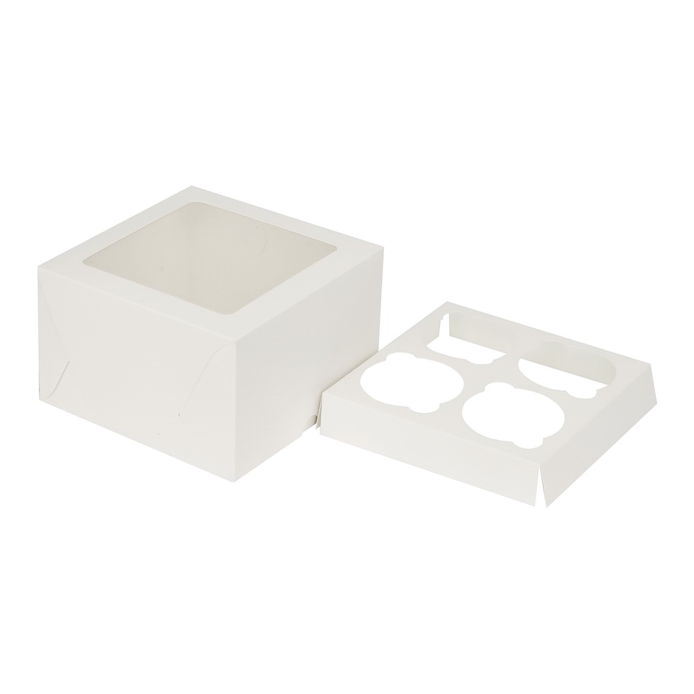 Коробка на 4 капкейка с окном Белая 16х16х10 см