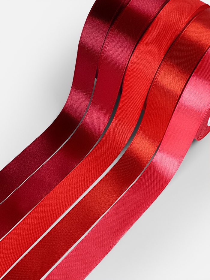 Набор атласных лент Красная-бордовая 20 мм 5 шт