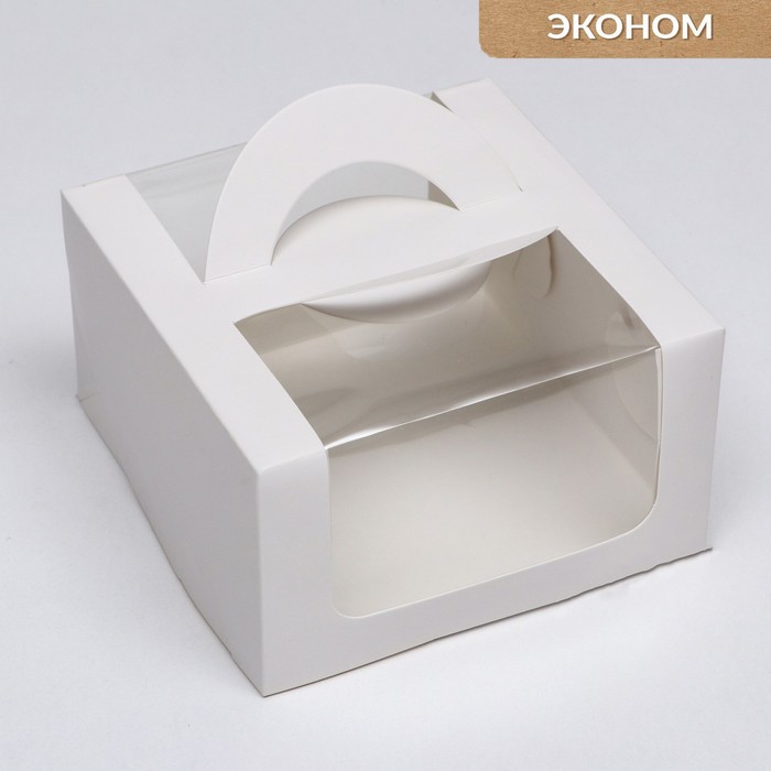 Коробка под бенто-торт Белая с окном и ручкой 14х14х8 см