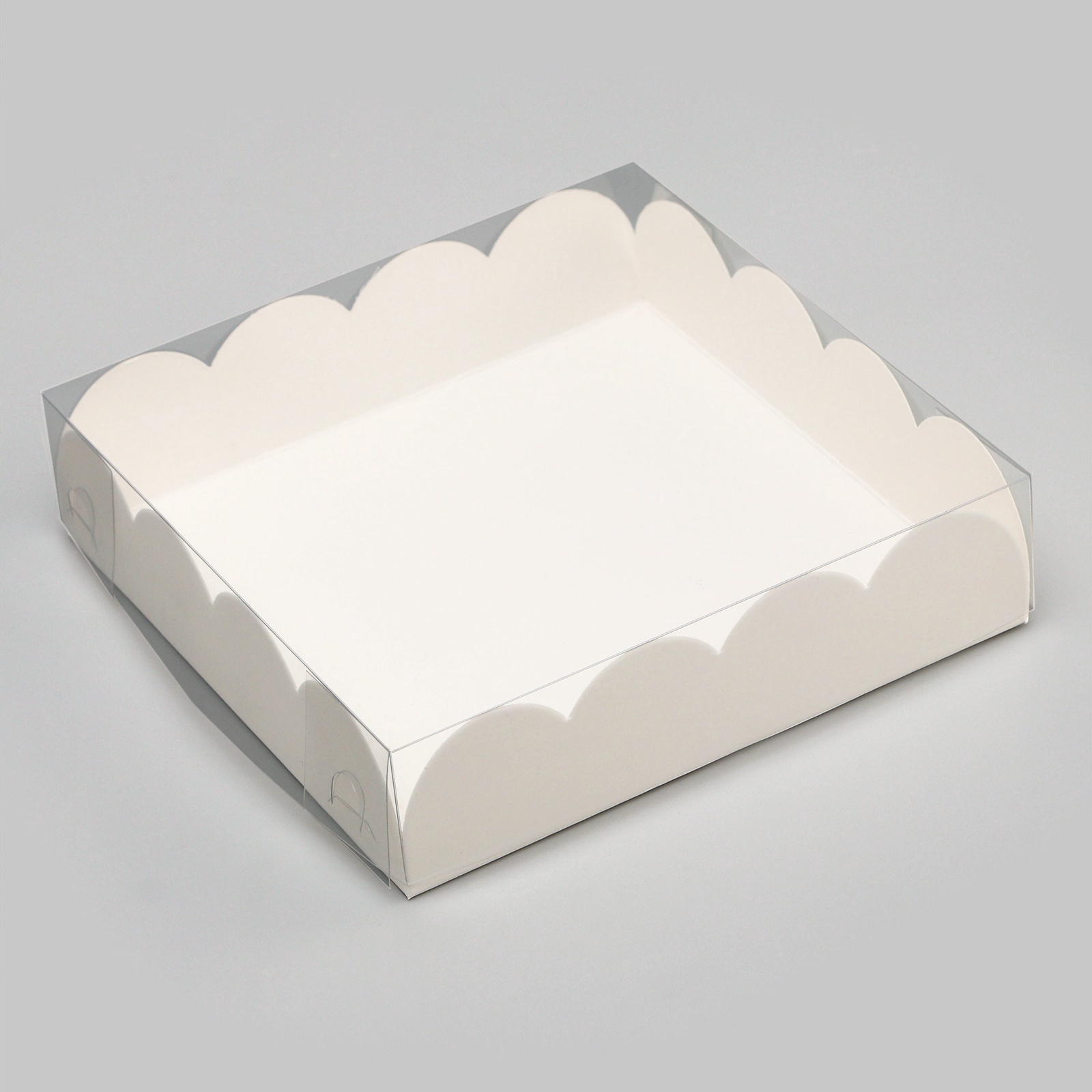 Коробка с прозрачной крышкой белая 16х16х4 см