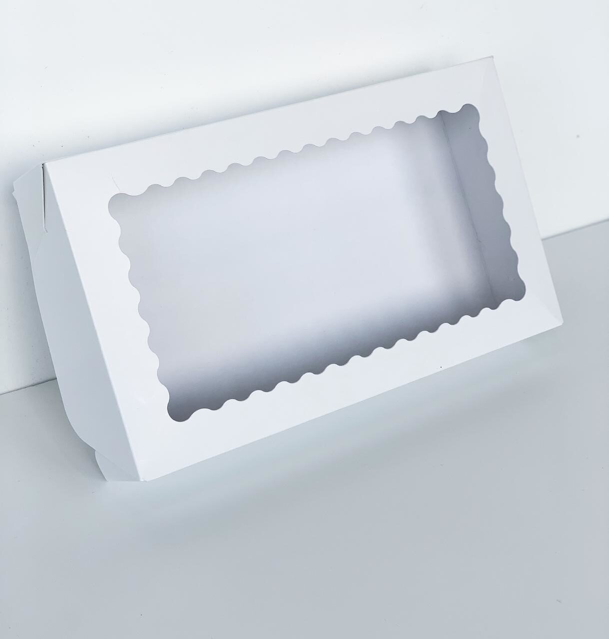 Коробка для сладостей фигурным окном Белая 24х14х5 см