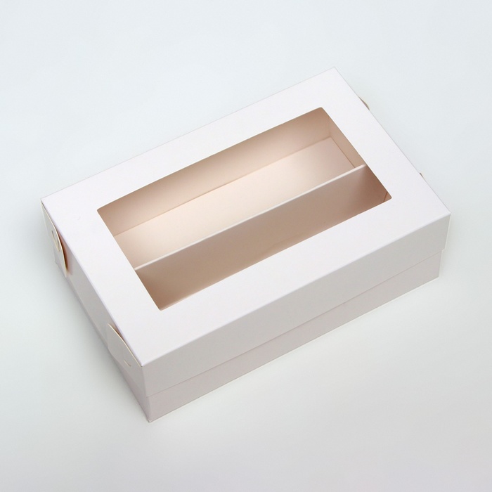 Коробка для 12 макаронс и ложементом Белая, крышка с окном