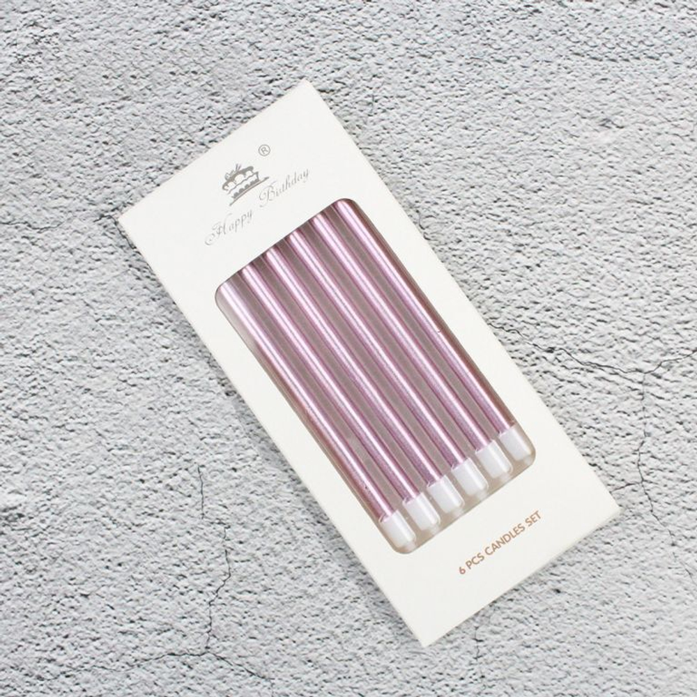 Набор свечей для торта «Happy Birthday, 6 в 1» Розовый металлик