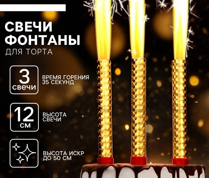 Набор тортовых свечей Фонтаны 12 см 3шт