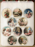 Наклейка Новый Год и Рождество Винтаж Круг 4,5 см 12 шт в Ассортименте