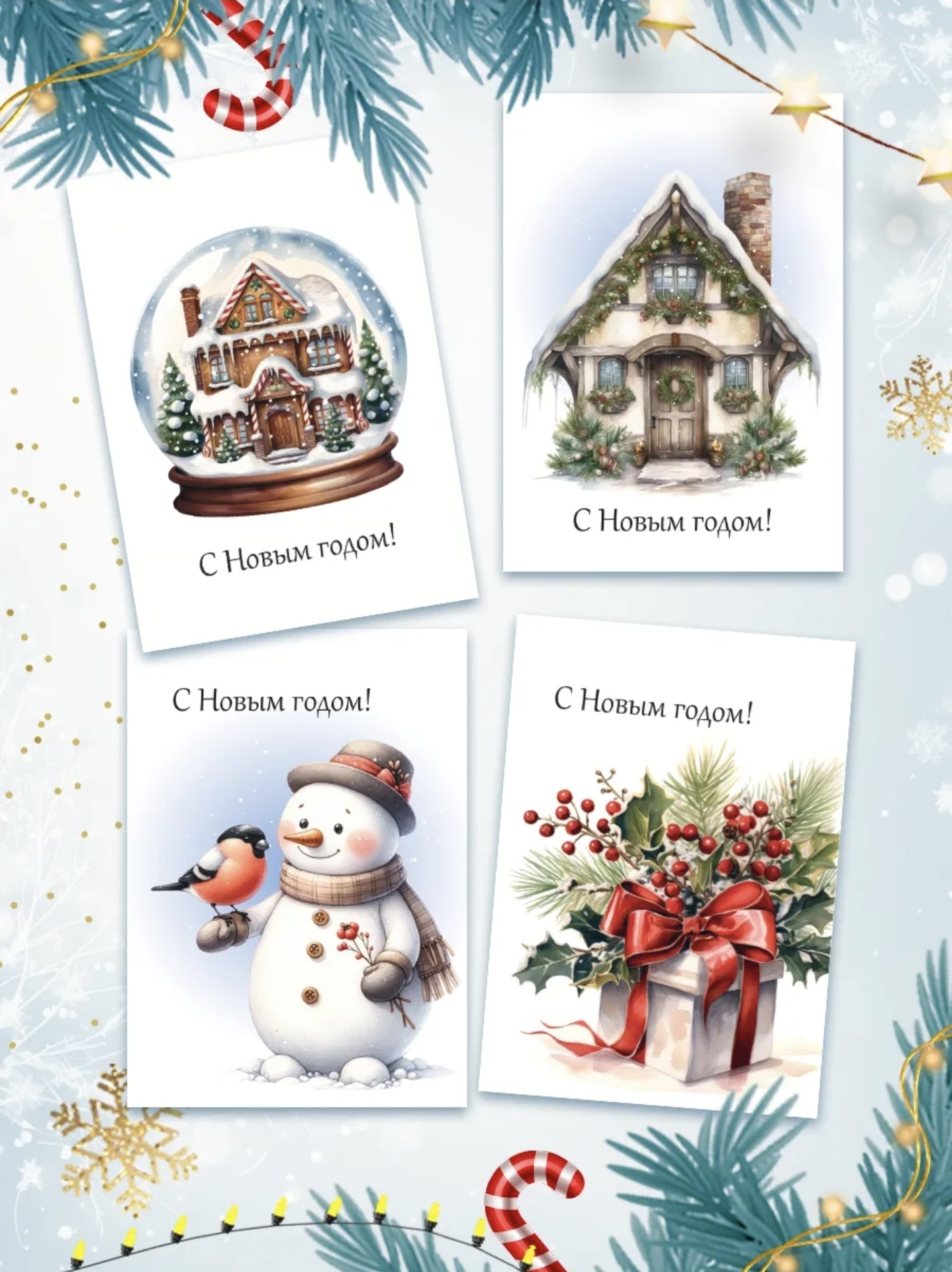 Открытка С Новым Годом! 7х10 см в ассортименте