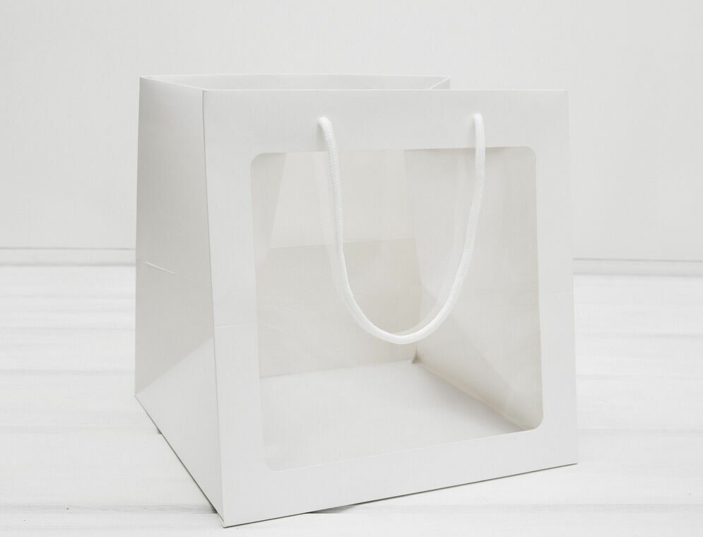 Пакет бумажный белый с окном и ручками 15х15х20 см