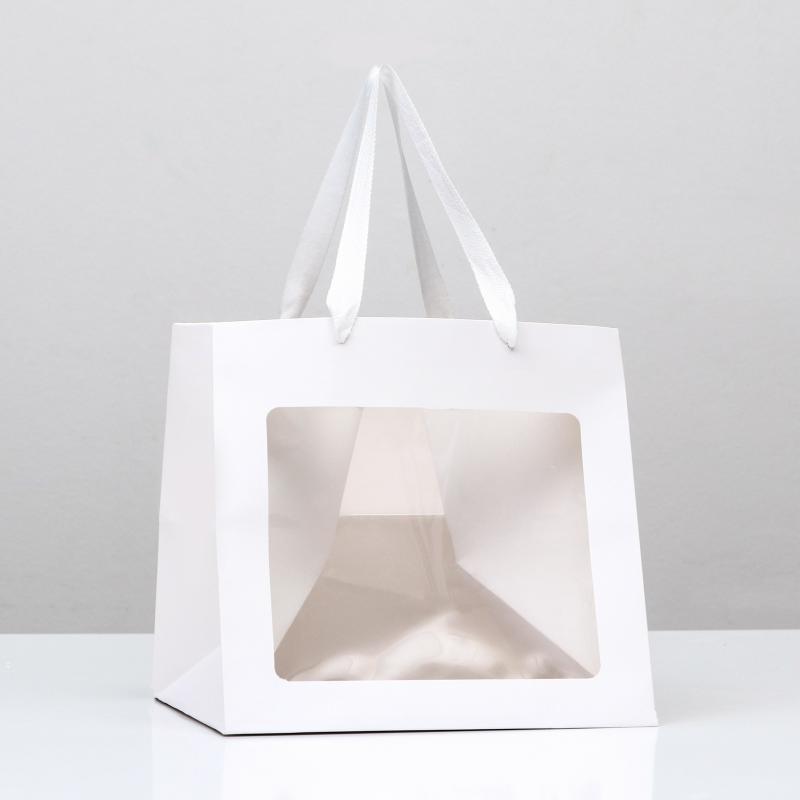 Пакет бумажный белый с окном и ручками 25х25 см