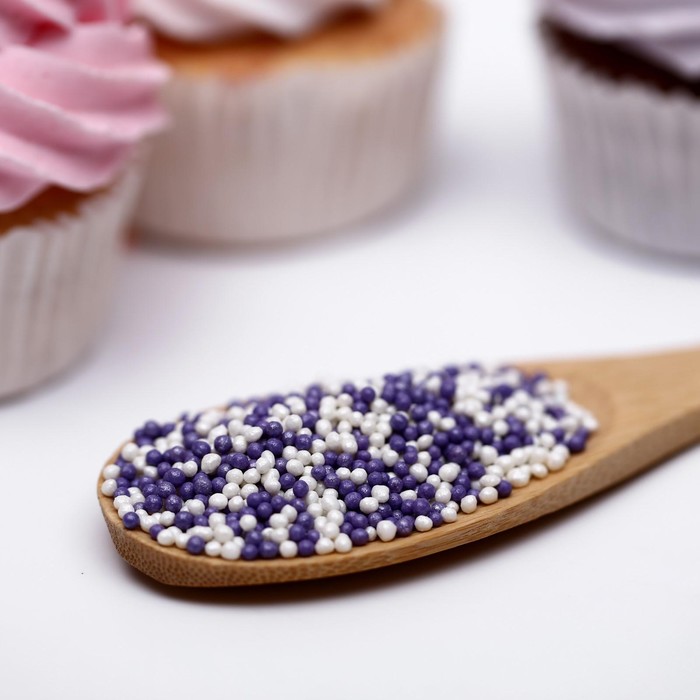 Посыпка из дутого риса Бисер Цветной серебряно-сиреневый 50 г