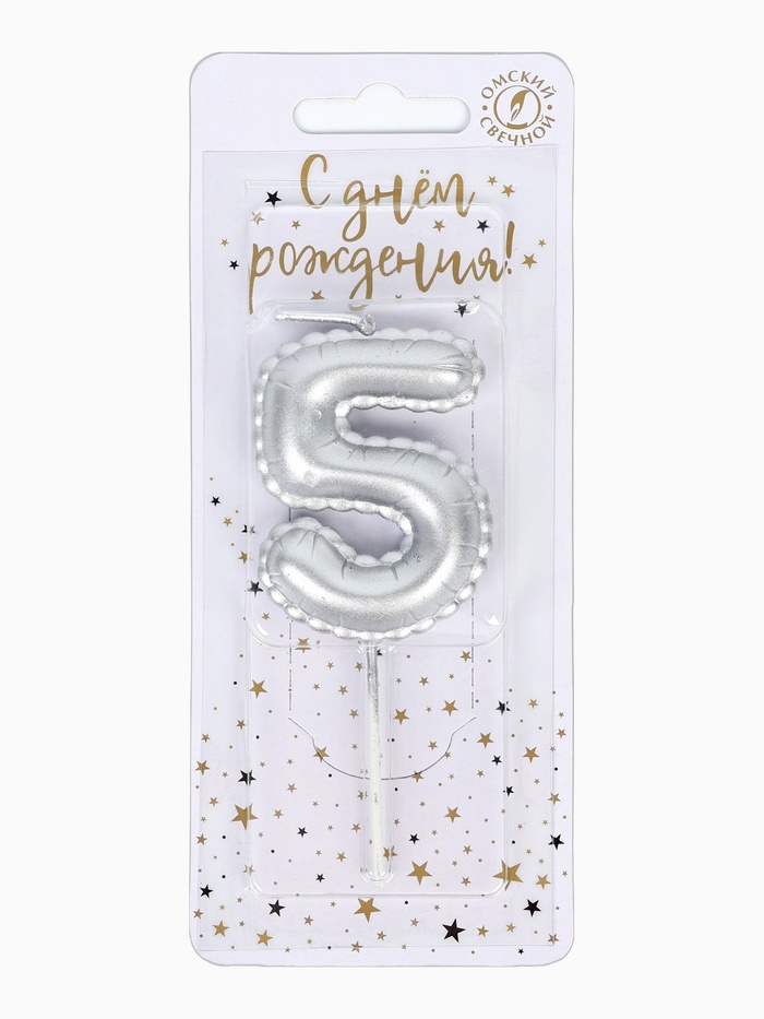 Будьте первым, кто оставил отзыв на “Свеча в торт на шпажке «Воздушная цифра 5» серебро”