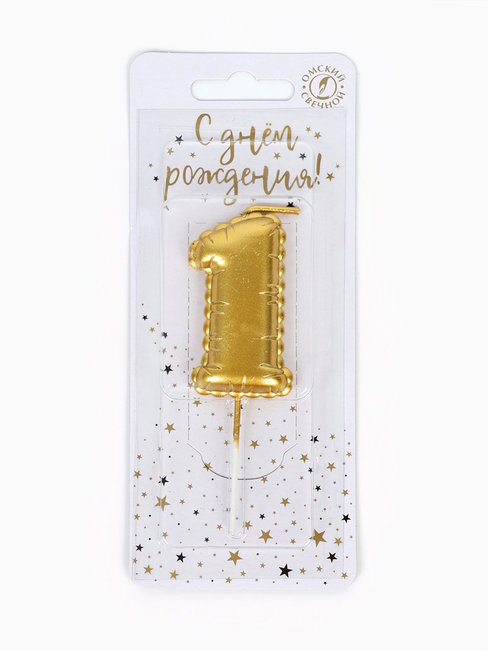 Свеча в торт на шпажке «Воздушная цифра 1» золото
