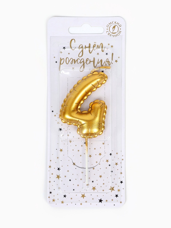 Свеча в торт на шпажке «Воздушная цифра 4» золото