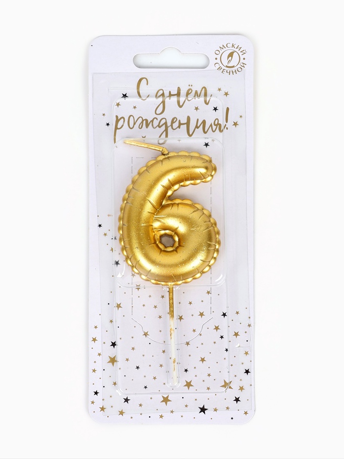 Свеча в торт на шпажке «Воздушная цифра 6» золото