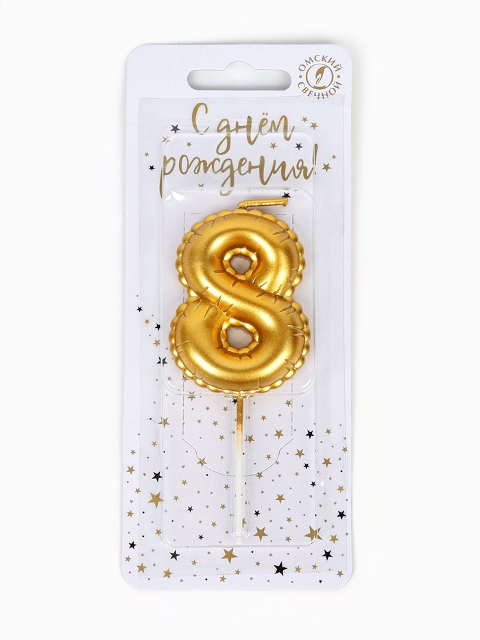 Свеча в торт на шпажке «Воздушная цифра 8» золото