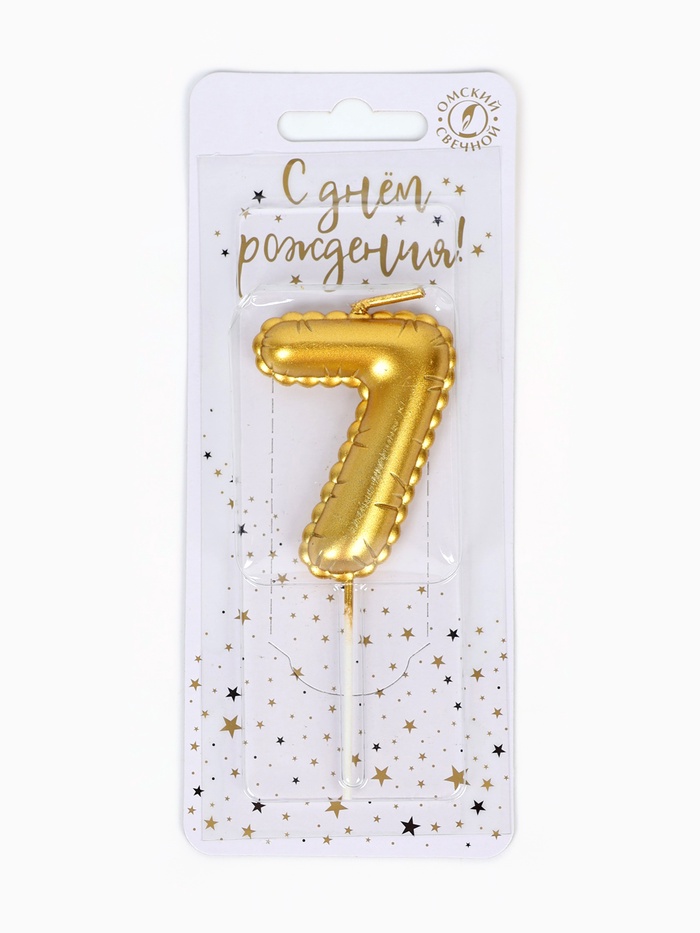 Будьте первым, кто оставил отзыв на “Свеча в торт на шпажке «Воздушная цифра 7» золото”