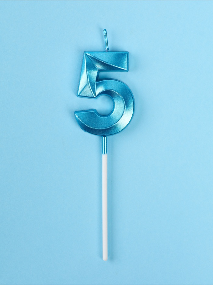 Свеча в торт на шпажке Цифра “5” «Грань» Голубая