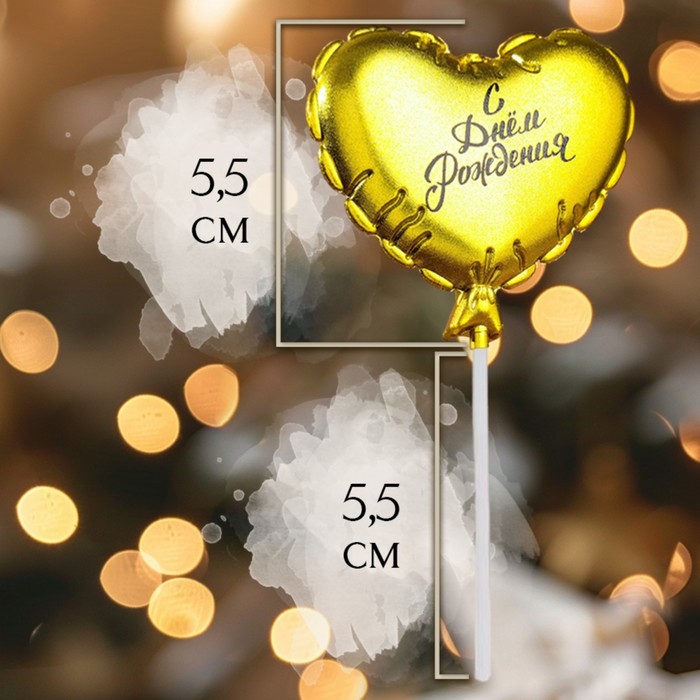 Свеча в торт «Воздушный шарик. Сердце» Золото