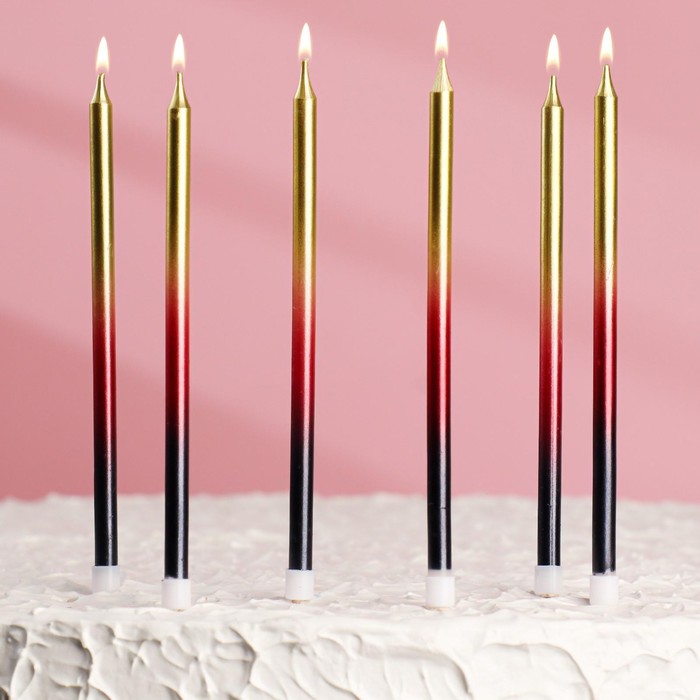 Свечи декоративные Градиент 6шт. 13см черный, бордовый, золотой