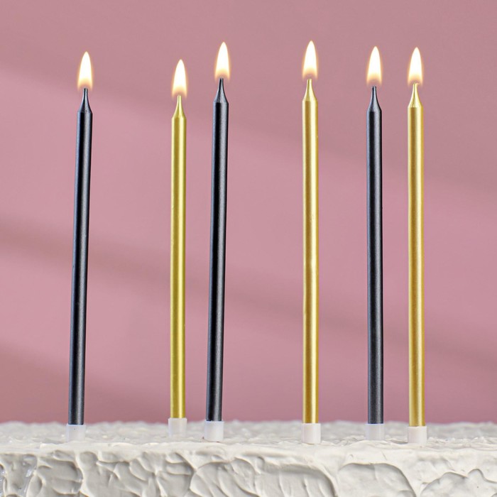 Свечи декоративные Золотые и чёрные гладкие 13см 6шт