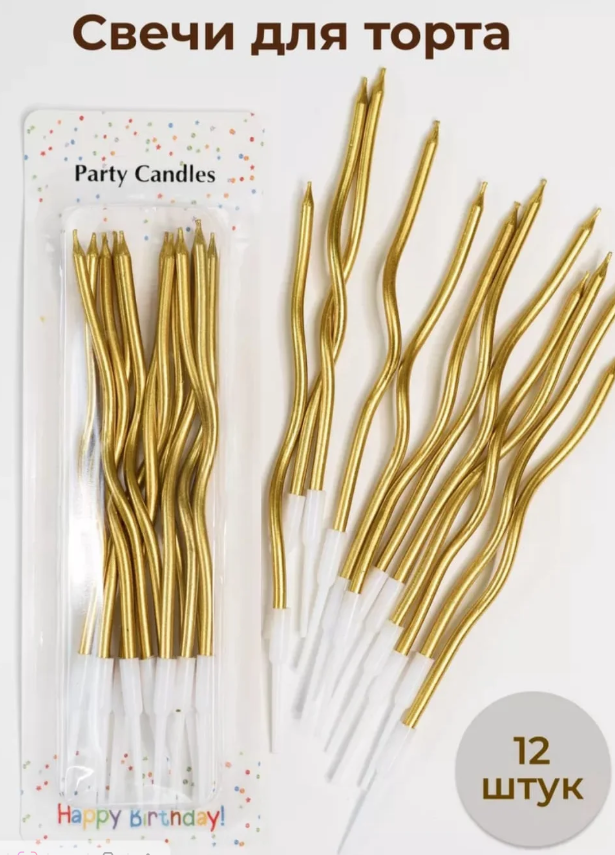 Свечи декоративные Серпантин Золото 12 шт