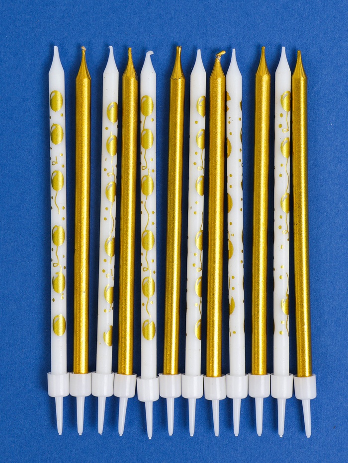 Свечи для торта «Воздушные шарики» 12 шт золотой и белый