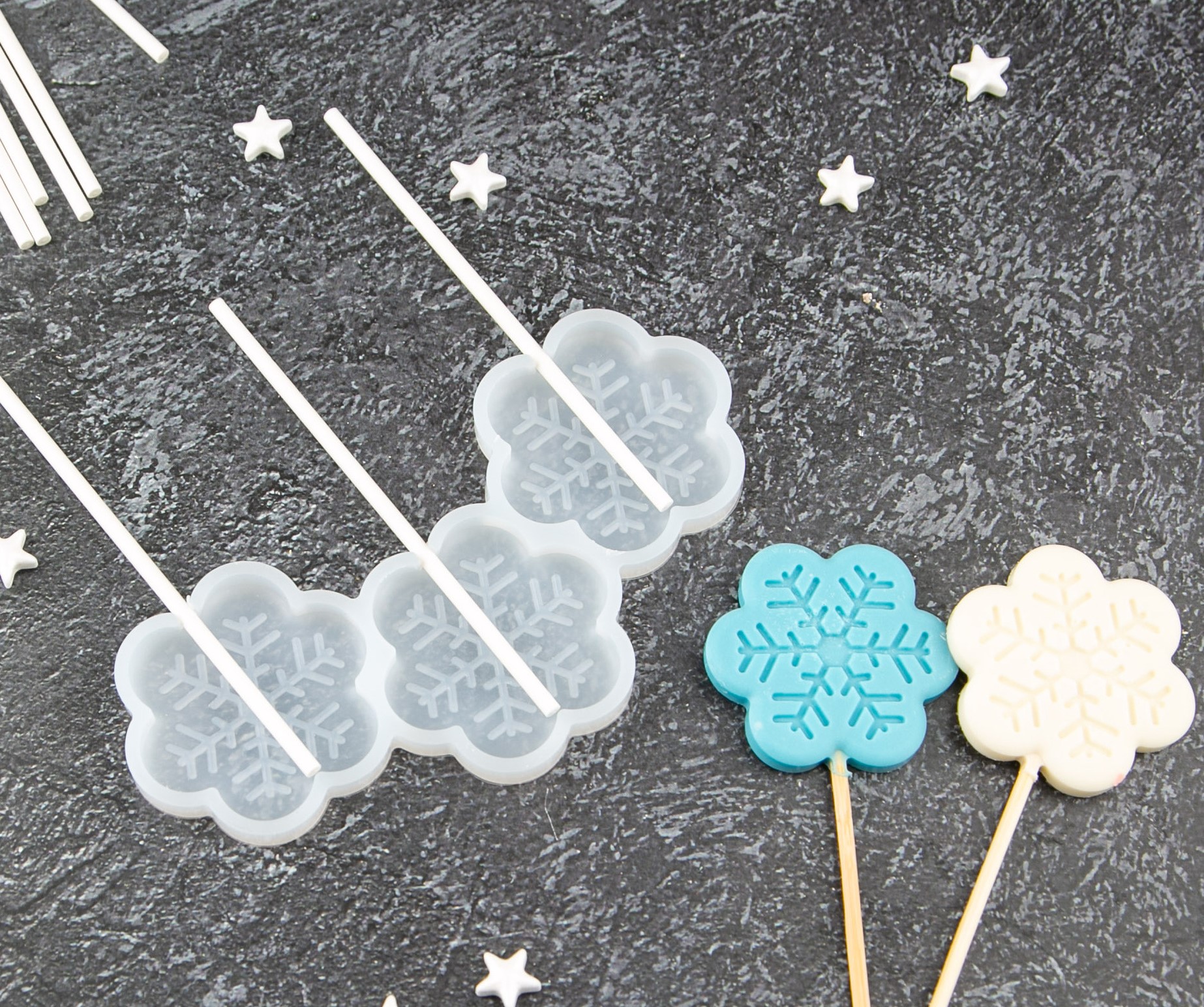 Силиконовая форма для леденцов Снежинки 3 шт