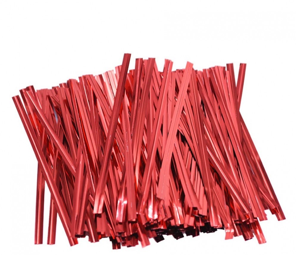 Твист-лента (завязки) для пакетиков красная, 8 см (100 шт)