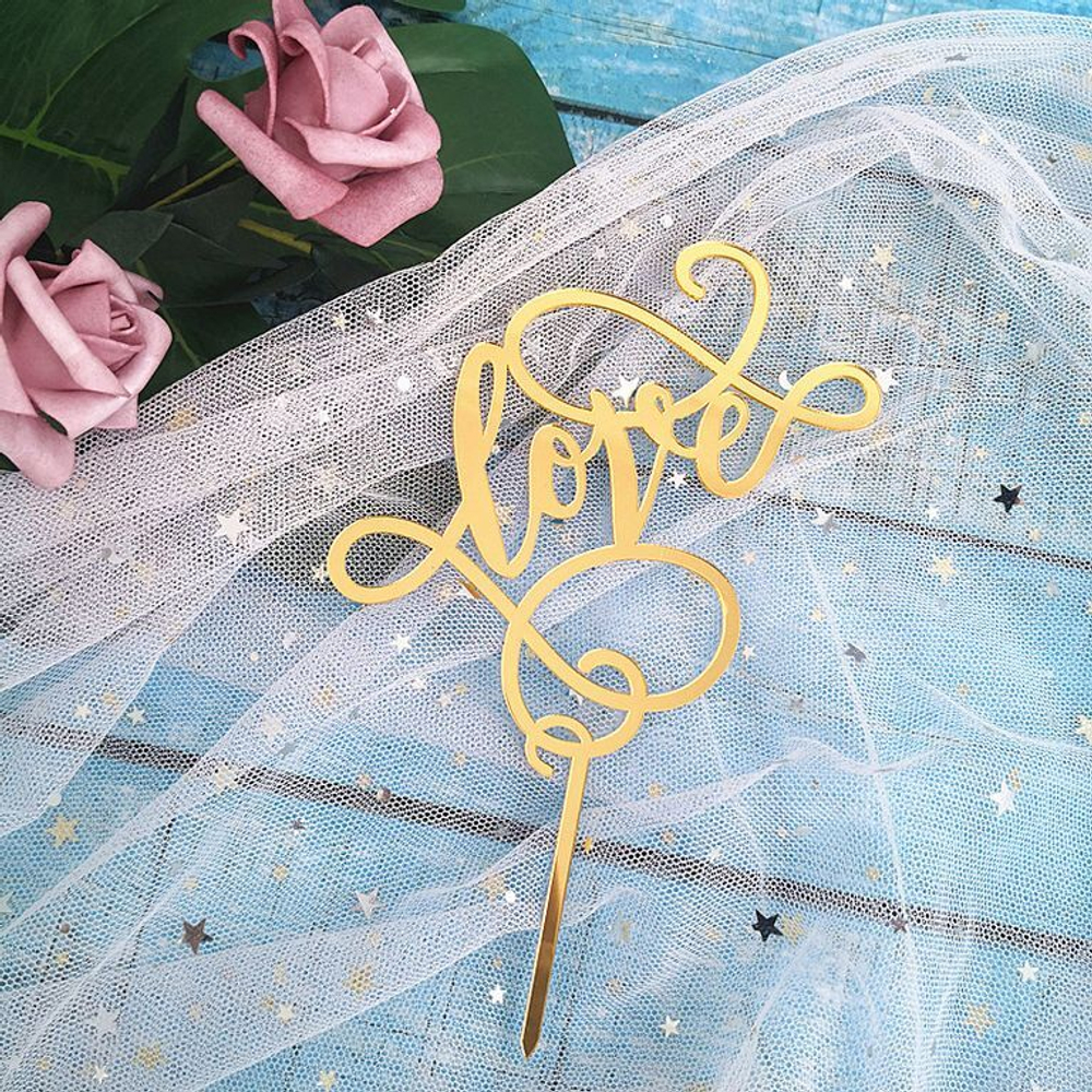 Топпер на ножке «Love» Золотой с вензелями