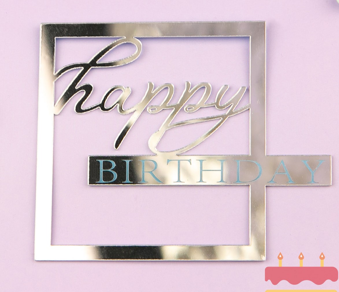 Топпер боковой для торта Happy Birthday в Серебряной рамке