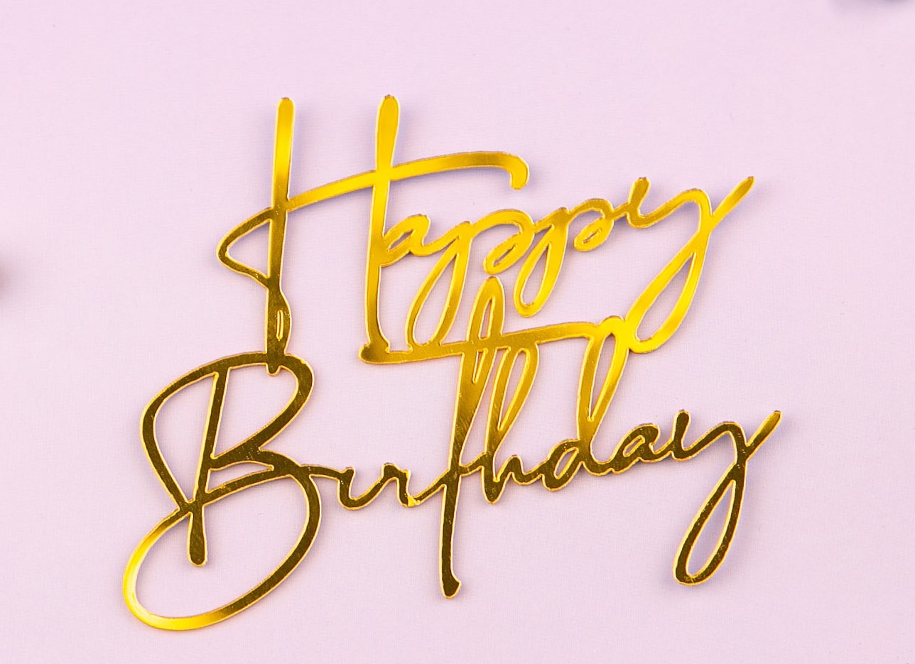 Топпер боковой для торта Happy Birthday 12 золото