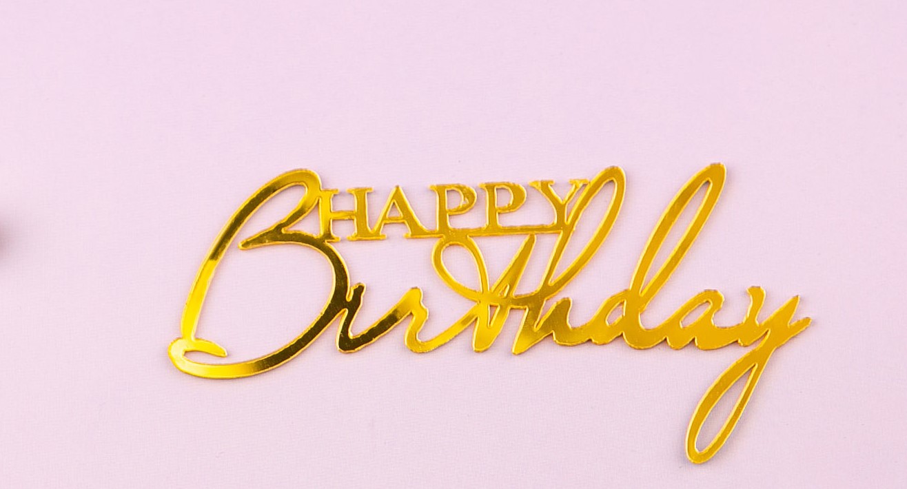 Топпер боковой для торта Happy Birthday 2 золото